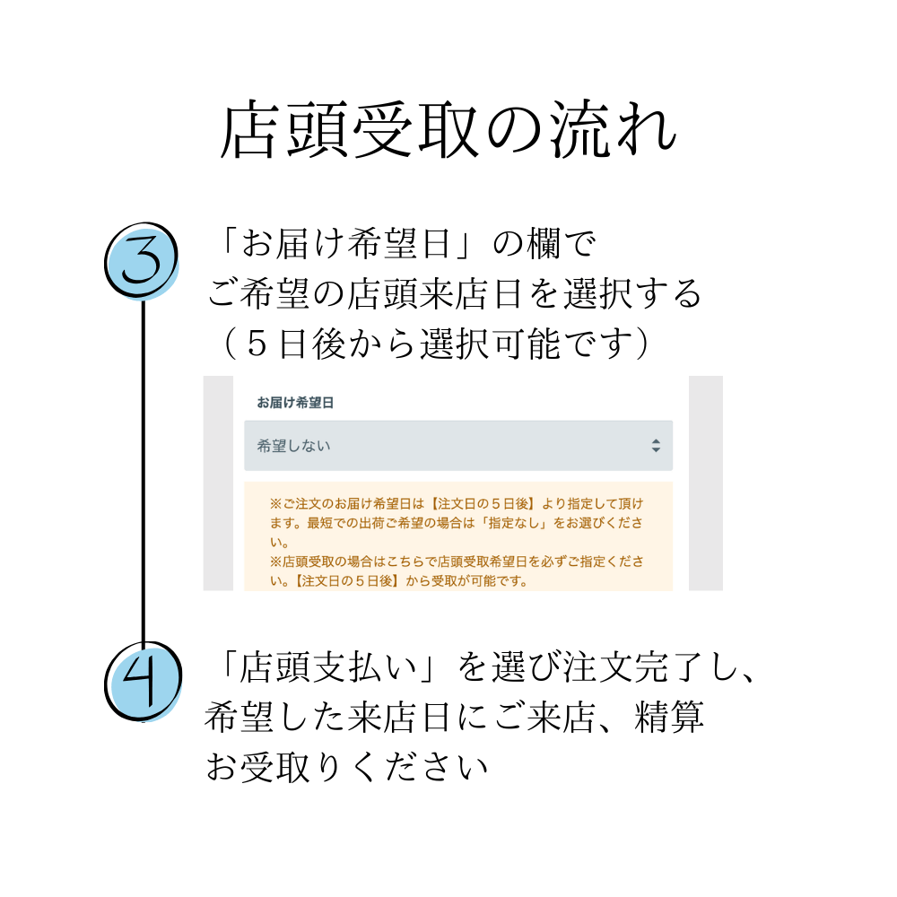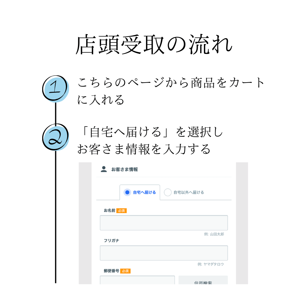 ※こちらは店頭受取専用ページです。配送をご希望の方はこちらのページからご注文ください。